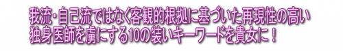 こうして得られた科学的・合理的根拠に基づいた情報から、容姿で独身医師を惹き付ける10のキーワードをあぶり出し再現性の高い情報としてまとめたものが「ドクターを虜にするサクセススタイル!」なのです!