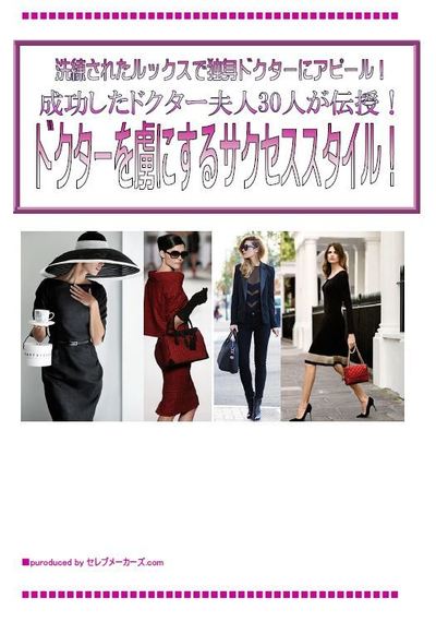 ぜひ「ドクターを虜にするサクセススタイル!」を使い倒して、独身医師を惹き付ける装いを身にまとい、貴女のドクター夫人の夢をかなえてください!